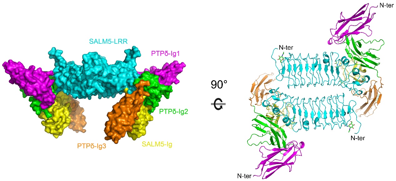 自闭症(Autism),又称孤独症,是一种广泛发育障碍性疾病,以社会交往障碍、语言发育障碍、刻板重复的行为方式为基本临床特征,迄今为止其发病原因和致病机制仍不清楚。SALM5 (synaptic adhesion molecule 5) 是一种与自闭症谱系障碍(Autism Spectrum Disorders, ASDs) 相关的重要分子,可以通过结合受体酪氨酸磷酸酶(LAR-RPTPs) 家族成员从而诱导突触前膜的分化,在突触形成中扮演着重要角色。但SALM5与LAR-RPTP相互作用并诱导突触分化的机理尚未解决。